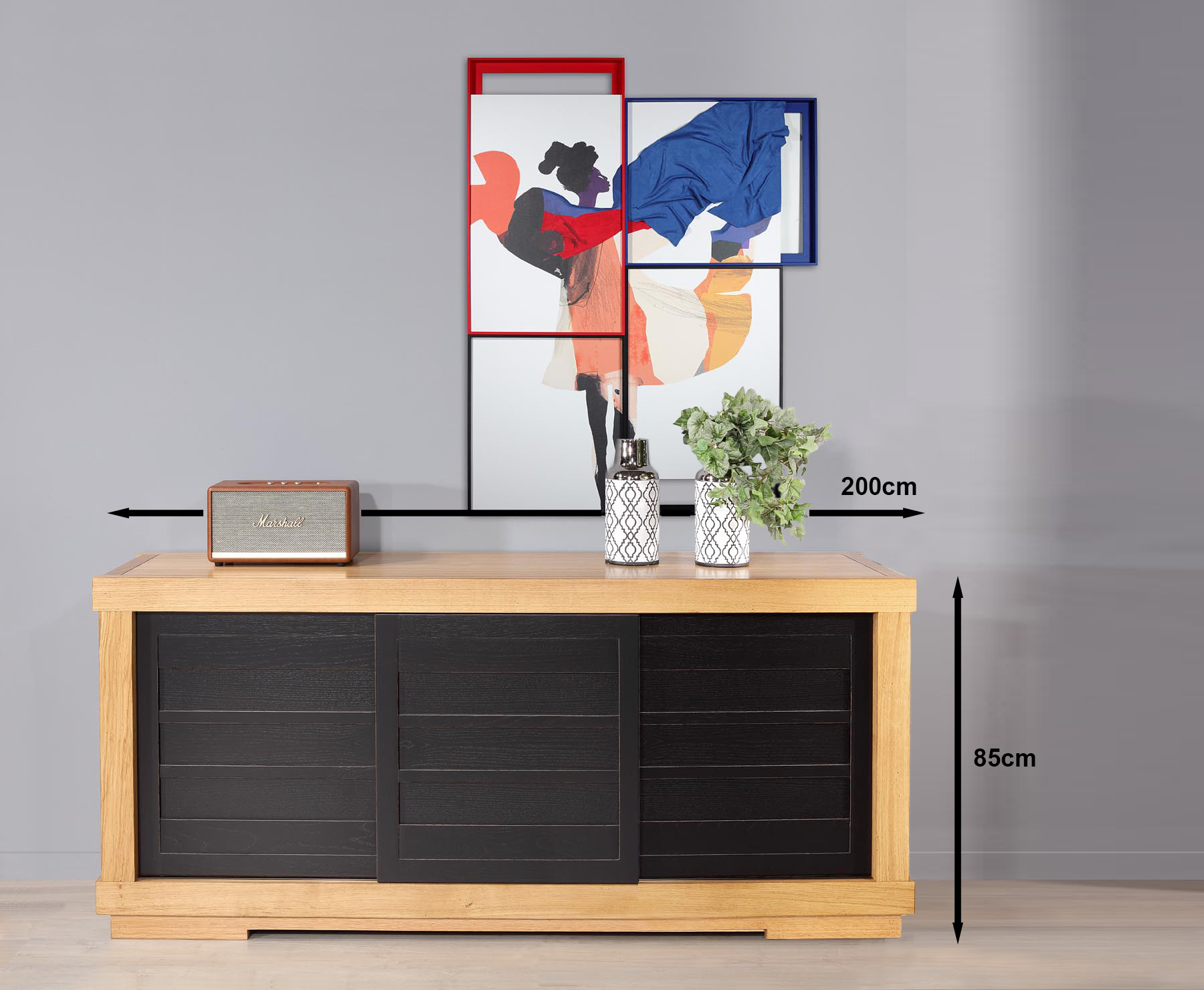 Buffet 3 portes COULISSANTES en chêne massif de style Contemporain,