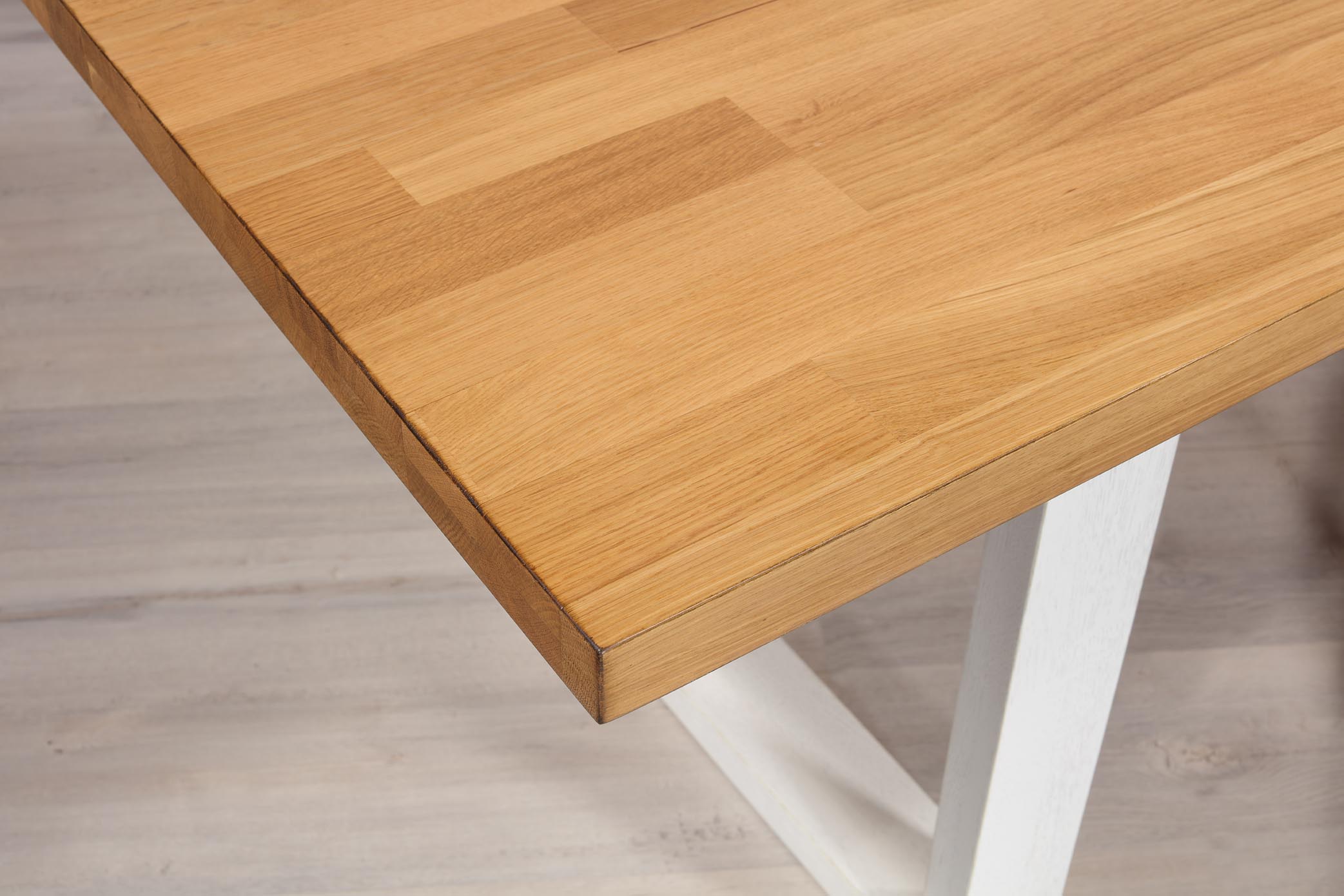 Table rectangulaire Yvan réalisée en Chêne massif 200x95 Plateau Fixe Plateau chêne Naturel Piètement chêne brossé Ivoire